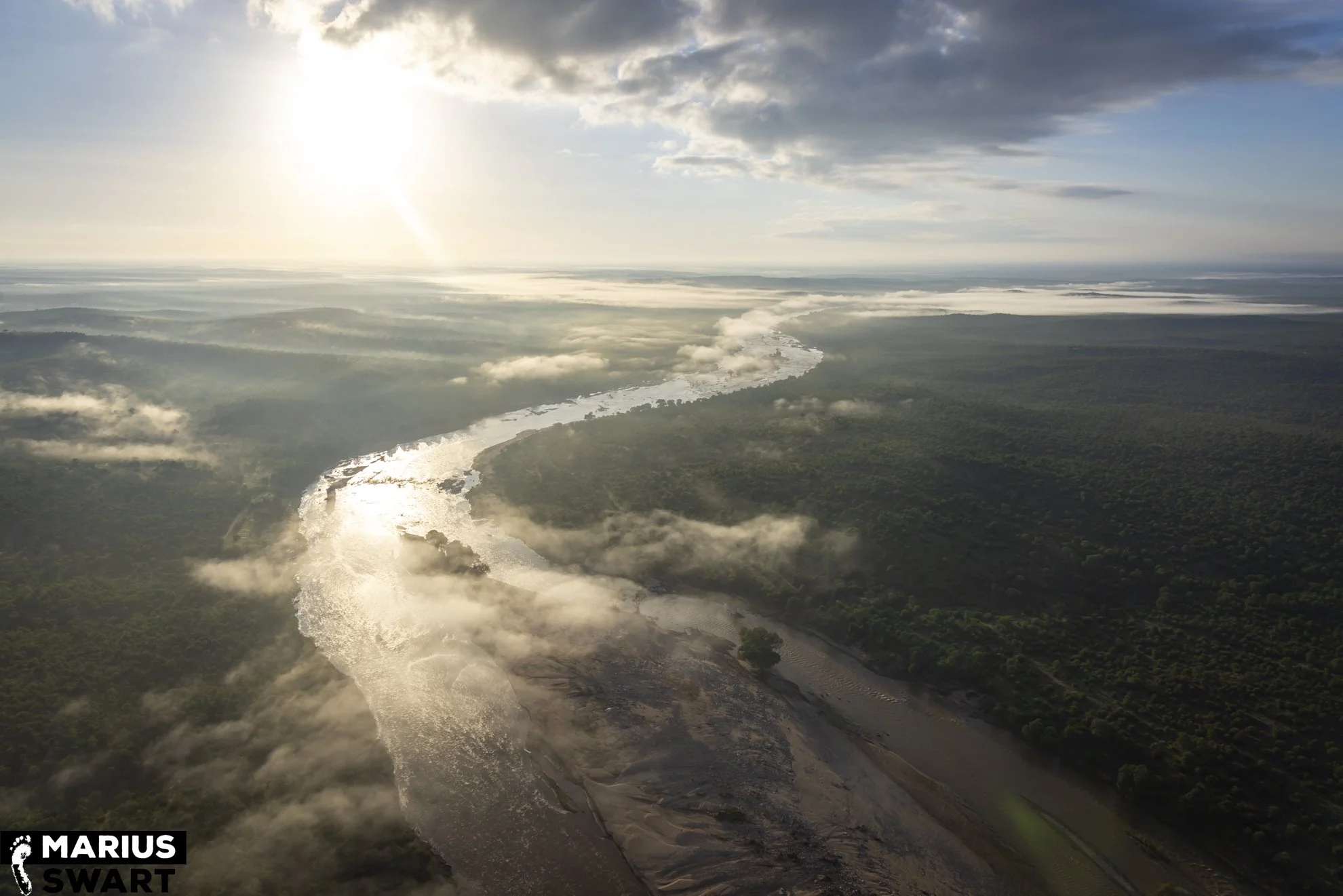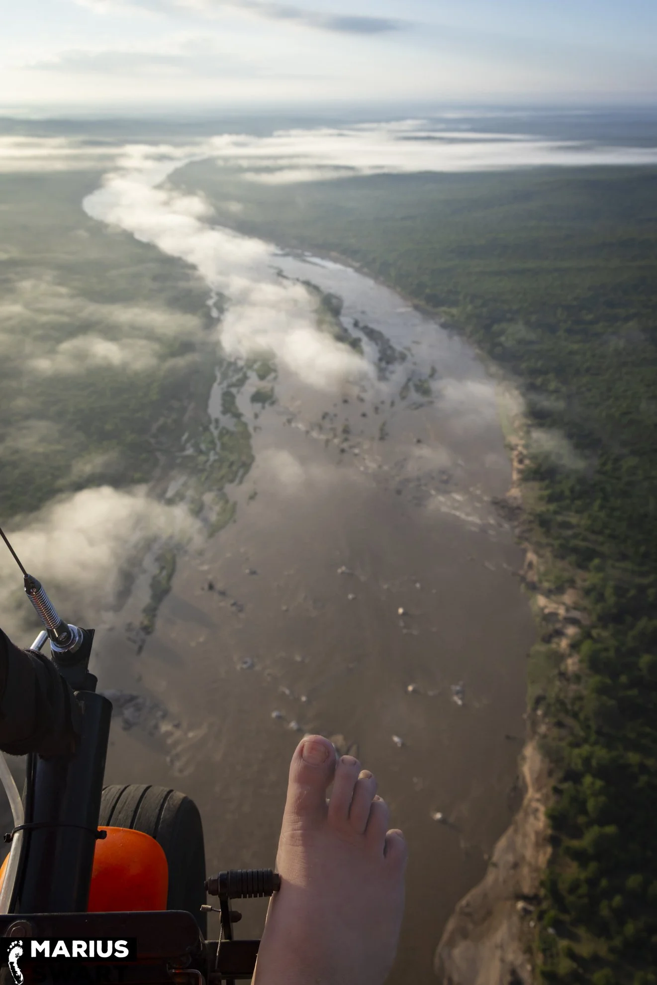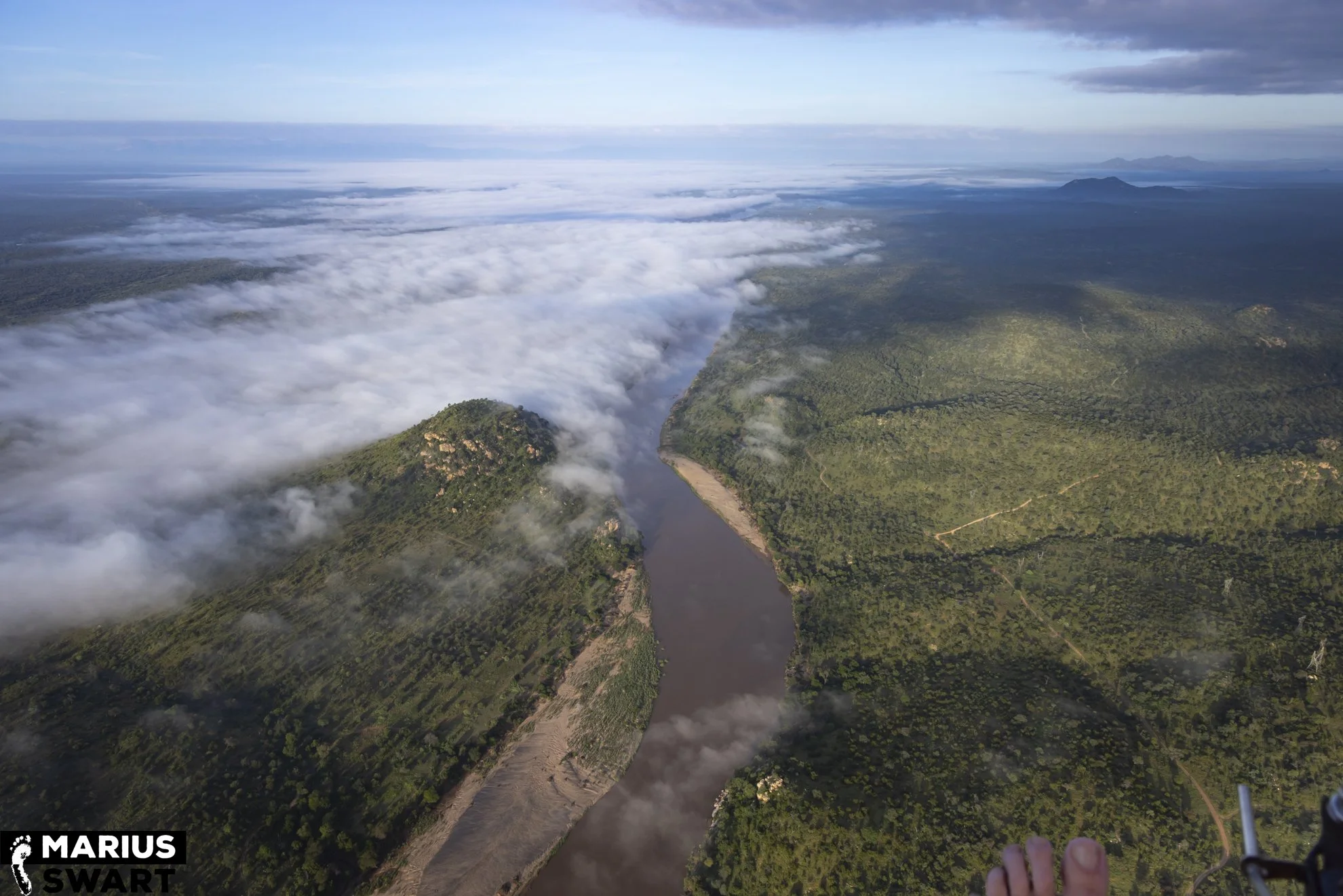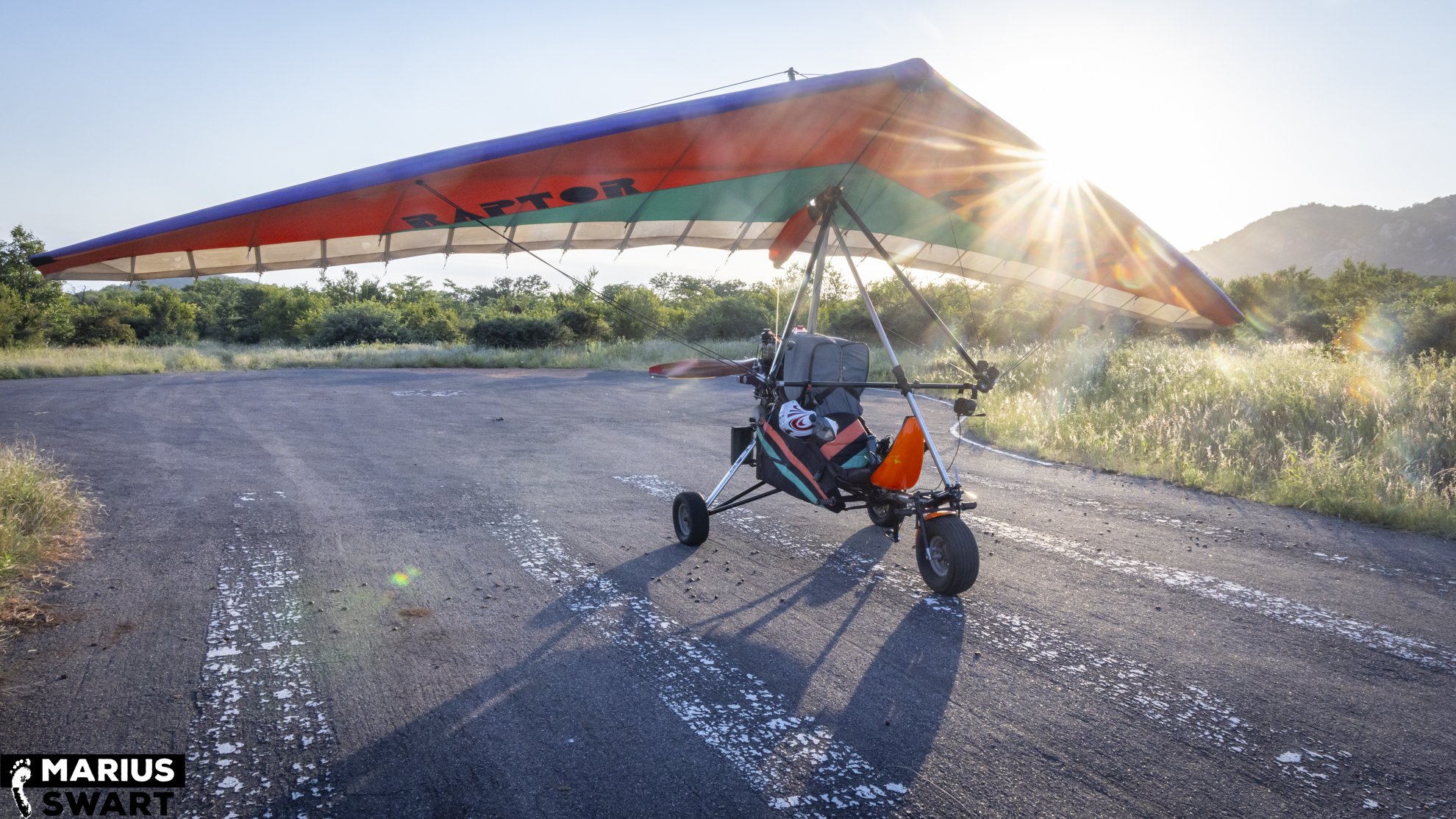 There are advantages and disadvantages to riding a motorcycle in the sky, and one disadvantage is its susceptibility to wind and thermals. Luckily strong wind is irregular but due to its low elevation and latitude, the Lowveld here gets pretty hot and thermal convection is a given. Sunrise usually provides the most pleasant conditions but in our winter it’s cool enough to comfortably fly till late morning.